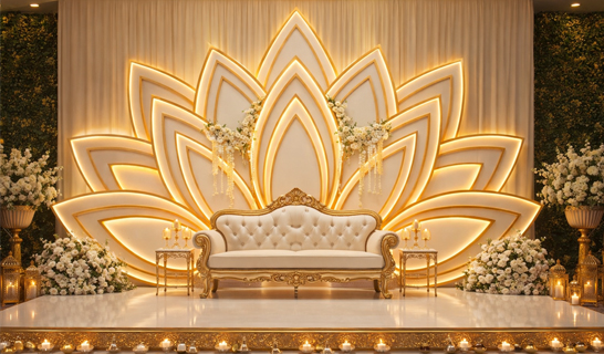 We reimagined the utility of plastic barricades as sleek, geometric structures, wrapping them in sheer drapery to define the space with a contemporary, avant-garde flair.